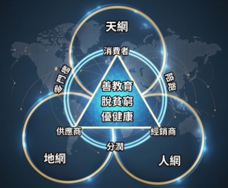 台灣NO1全通路兼職電商平台美四季以獨特的「天地人三網」生態系統,打造全方位的商業模式。這個生態圈以「善教育、脫貧窮、優健康」為核心理念,透過三個相互連結的網絡,創造多贏局面。